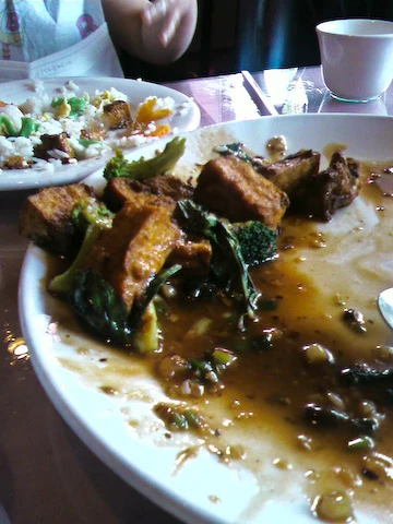 Shanghai Garden! There may be some debate but most folks I've talked to put Shanghai in their top couple of Chinese restaurants in the city. We ordered their signature hand-shave barleygreen noodles and crispy tofu with broccoli in black bean sauce, and Mini-Me ate everything and went back for seconds. I thought it was interesting that there was Thai basil in the tofu dish. Shanghai is a straight ahead Chinese place, so I'm curious how that influence is present. If anyone can clue me in, please do. Here's one more cel-phone snap, full, happy, and a great morning.