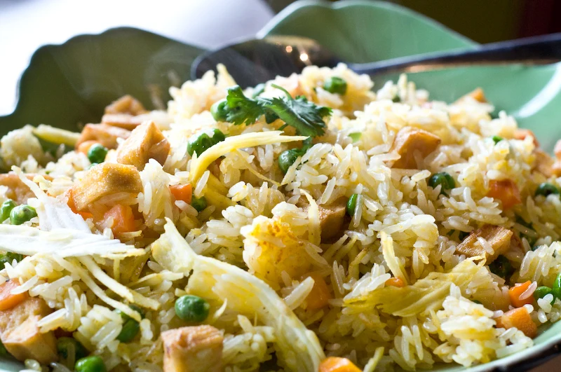 Our final dish was the coconut rice below. Shards of fresh grated coconut provided lots of flavor. Not many restaurants go to that much trouble. I didn't think the peas and especially the carrots added much. Still, this was very tasty.