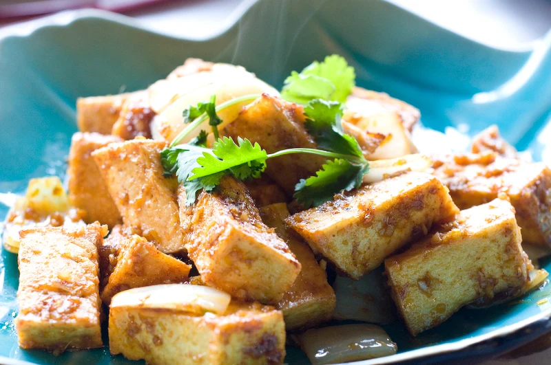Our next course was the lemongrass tofu you see below. I consider this to be a benchmark item for vegetarian Vietnamese cuisine. It is often used as a component in other dishes in place of meat so you can end up eating a lot of it. Frequently it is underflavored. This one was excellent, far better than the one at Tamarind Tree. The lemongrass was delivered in the form of almost a wet rub, with garlic and ginger and chilis. The only problem was that it didn't come out hot enough. My guess is that the cook made it at the same time as the appetizer and it sat too long.
