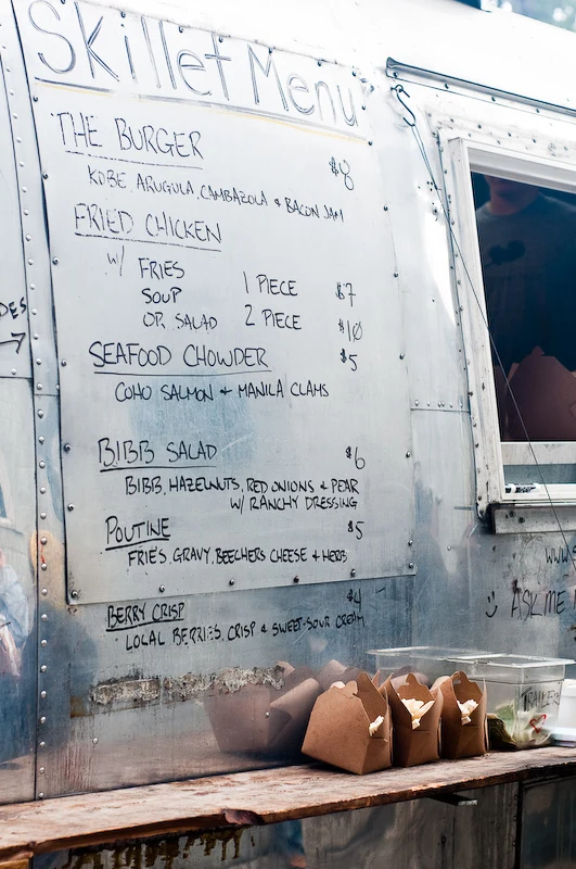 I find it incredibly inspirational that there are so many new places to eat that question the very idea of a restaurant. Skillet goes right to the heart of that investigation. To serve top notch food, do you have to have waiters? Tablecloths? A printed menu? Nope. Not even a fixed base of operations.