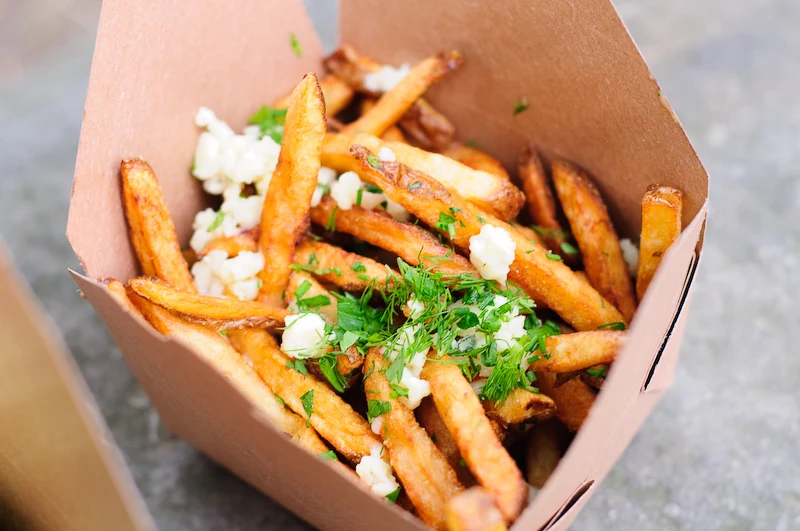 Granted, poutine without the gravy ain't really poutine. Cry me a frickin' river. Super crisp, deep brown, well salted, wicked hot fries. Soft, cheddary cheese curds relaxing into the fries. A sprinkle of fresh dill and parsley on top. It might not be authentic, but it was ridiculously delicious. I'd even go so far as to say it is probably better this way because the gravy doesn't sog up the taters.