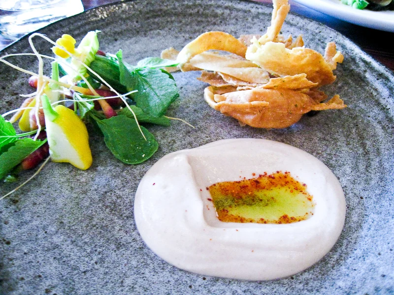Ubuntu serves no ordinary hippie vegetarian dishes. To make the distinction, Fox invented the apt term "vegetable-inspired cuisine". The vegetables, many of which are grown in their own biodynamic garden, have inspired him to create food that is by turns sensuous, rich, austere, surprising, humorous - in short, on a par with the best modern restaurants anywhere in the world.