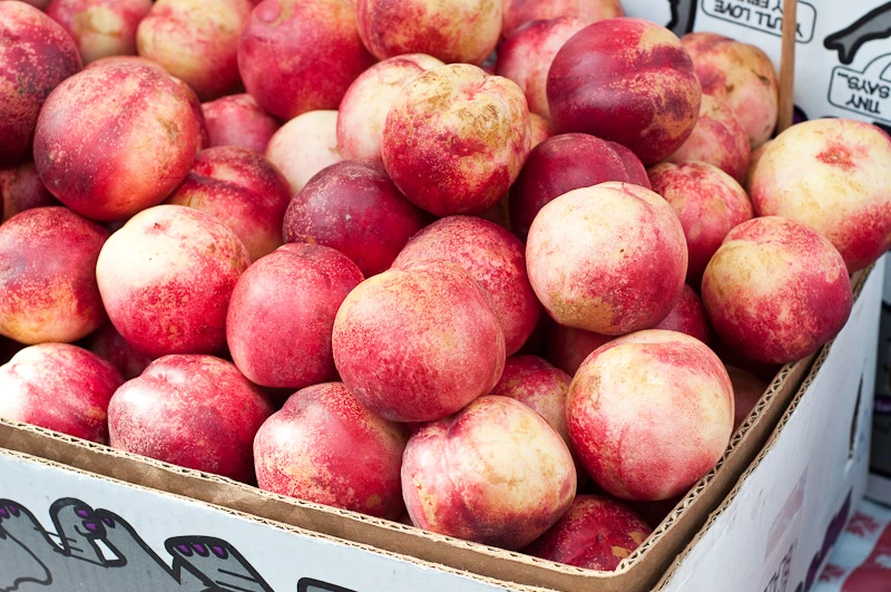 These next two pictures of nectarines show the concepts even more clearly (click on them for a larger view). Not one of my best compositions, but check out the lighting. The one on the left is pure natural light. Note the harsh, directional shadows from the sun. On the right, we used a simple folding fabric disc to bounce some light back onto the other side of the fruit. See how much more evenly lit and appealing that picture is? From there it would have been a simple matter to use a mirror to add a highlight or two for even more interest.