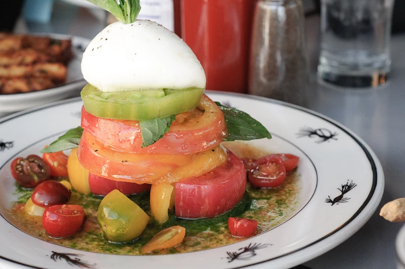 In the picture of the heirloom caprese above, from Steelhead Diner (yum!), Lou was holding a reflector to fill in a shadow area in the front right. In my initial shot, that area was so dark that the contrast was distracting.