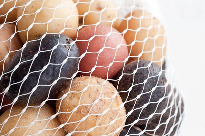 Sarina and I both fell in love from afar with these tiny little potatoes from Olsen Farms. We spotted them from a few booths away at the farmer's market, and even though we have several rows of potatoes growing at home, we had to have them. I know it is hard to see the scale, but each one was just a bit bigger than a large marble.