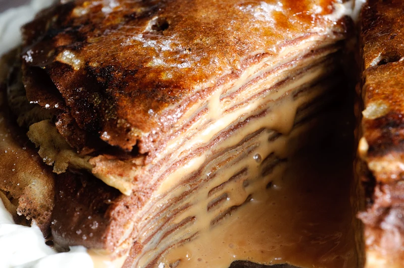 Gâteau de crêpes with chocolate pastry cream and dulce de leche