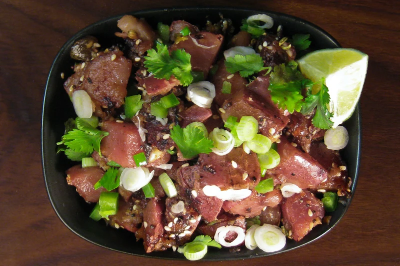 To really make the flavors pop, I add most of the spices, along with lime juice and fresh ginger, right at the end. I love the contrasting bright notes with the mellow, earthy potatoes. If you want them less spicy, tone down the chili flakes and jalapeno to your taste.