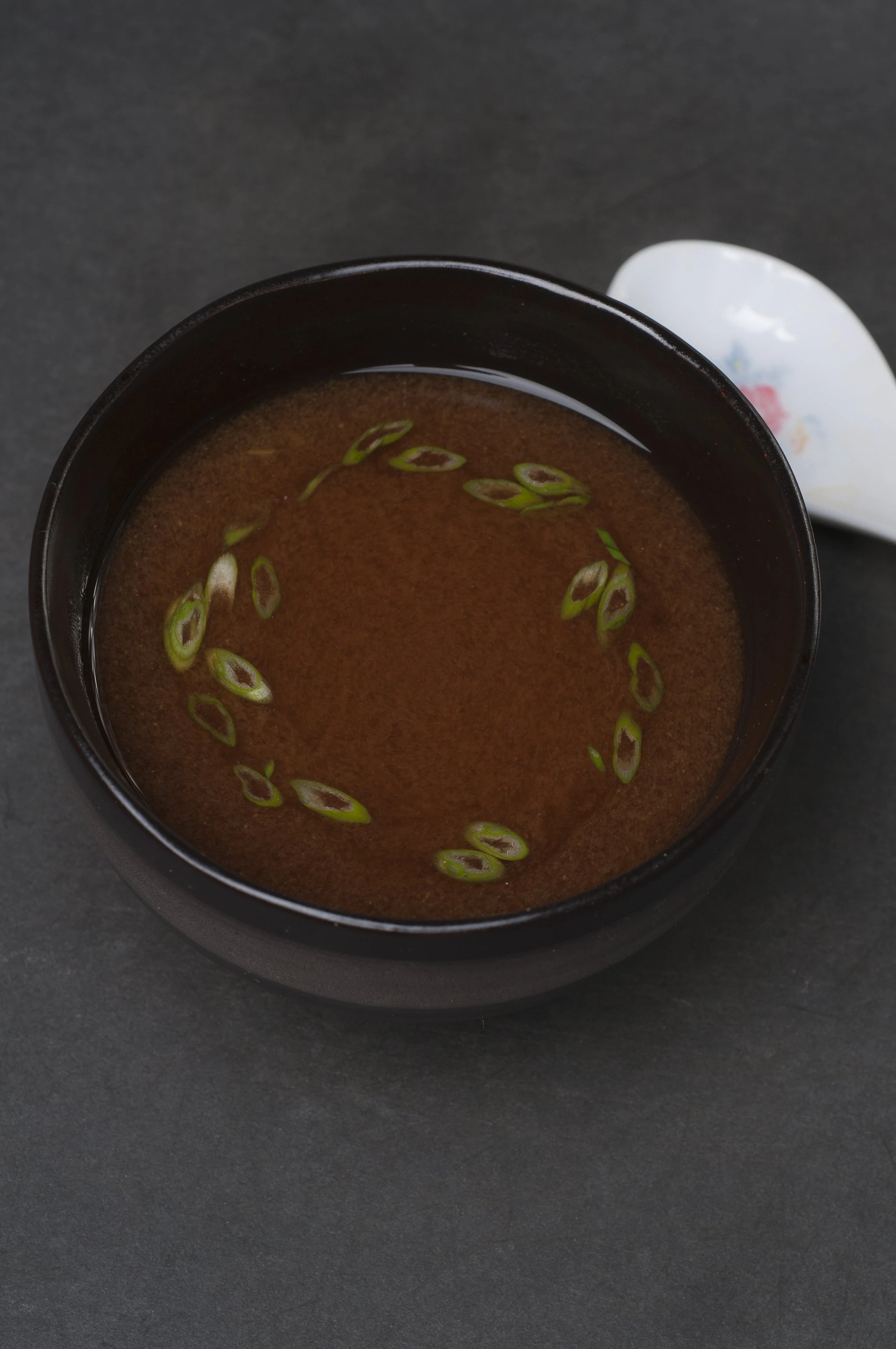 - Strain the soup to remove the garlic and any undissolved bits of miso. Return to the pot and reheat but do not boil. Taste and add more salt or soy sauce if needed.