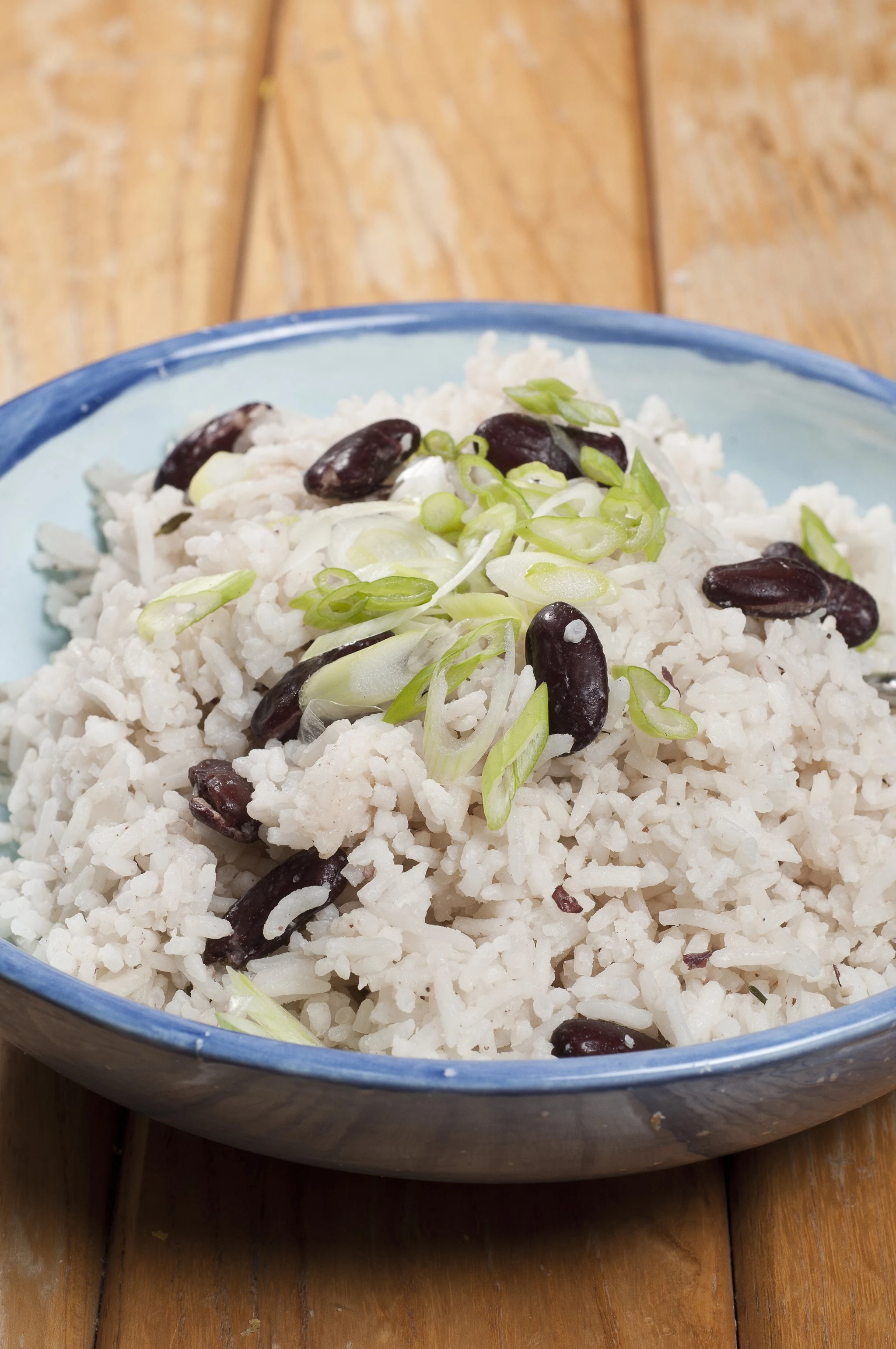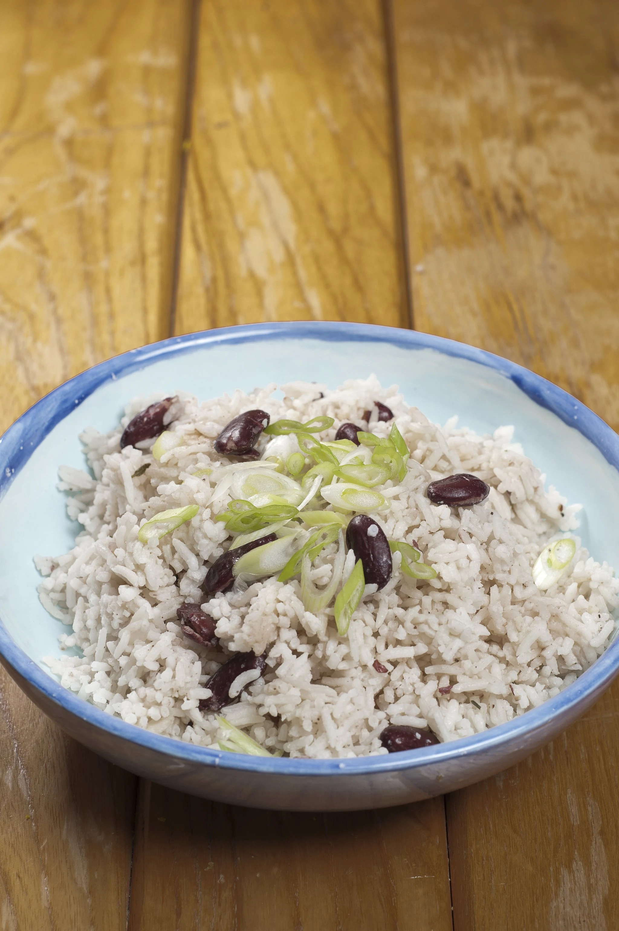 Rice and Peas is a classic Jamaican dish, traditionally served on Sundays. Peas in this case actually refer to kidney beans, pigeon peas or cowpeas. The rice is richly flavored with coconut milk, garlic, crushed green onions, thyme, and, if you dare, a Scotch Bonnet or habanero pepper.