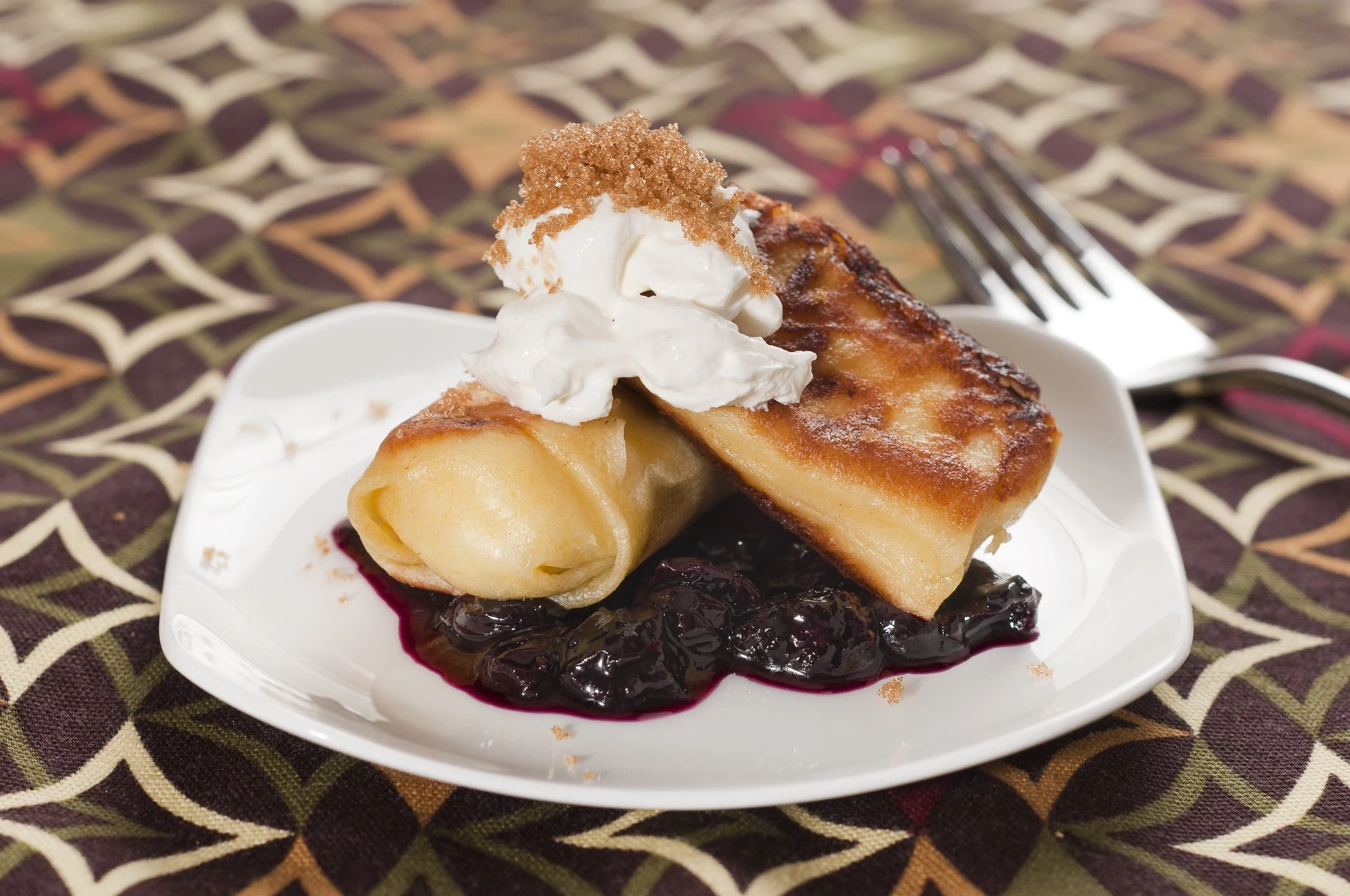 You can serve these crepes with sour cream and brown sugar, or for an extra-special touch, offer the rosemary-blueberry sauce on .
