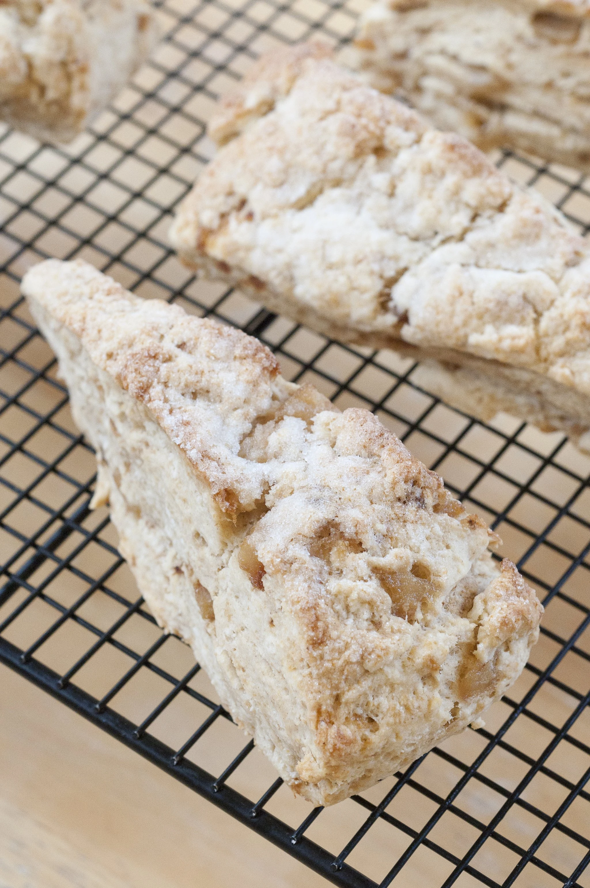 - Flatten the dough into a rectangle about 24” x 4 ½”. Brush the top with melted butter and sprinkle with the remaining 3 tablespoons of sugar. Cut into 6 even rectangles and then divide each rectangle into two triangles. Transfer to the baking sheets, leaving two inches between scones.
